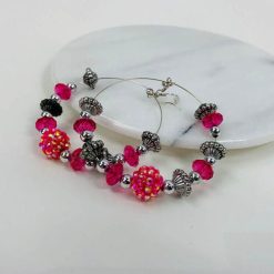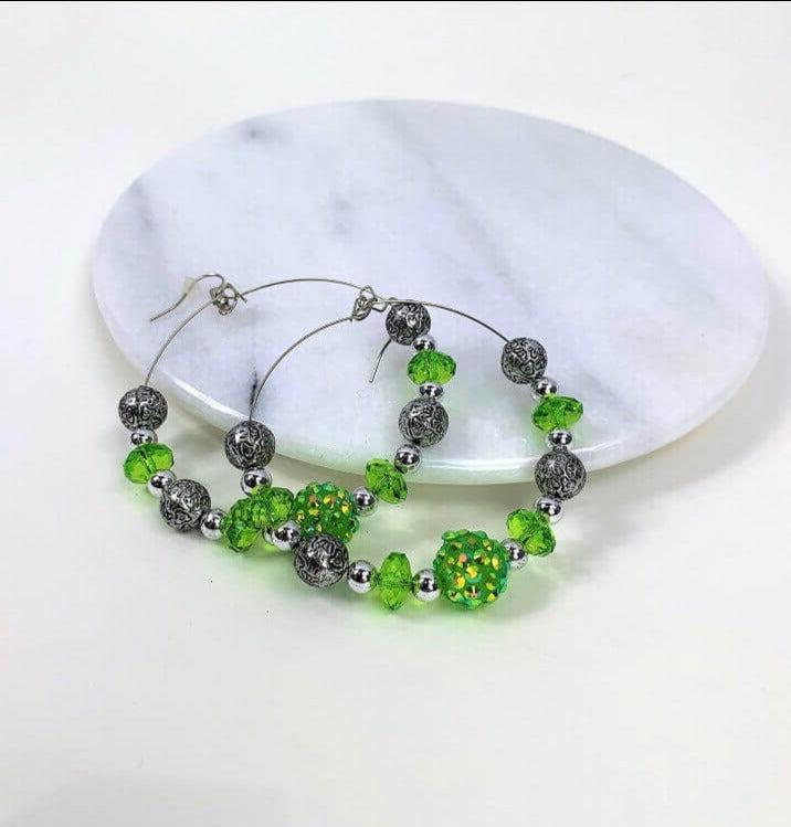 These earrings are one-of-a-kind and eye-catching. The acrylic beads sparkle in the light, and the hoop shape is feminine and fun. You can wear them all day long because of how lightweight they are. Accessorize with your favorite school colors for the ultimate gameday look!