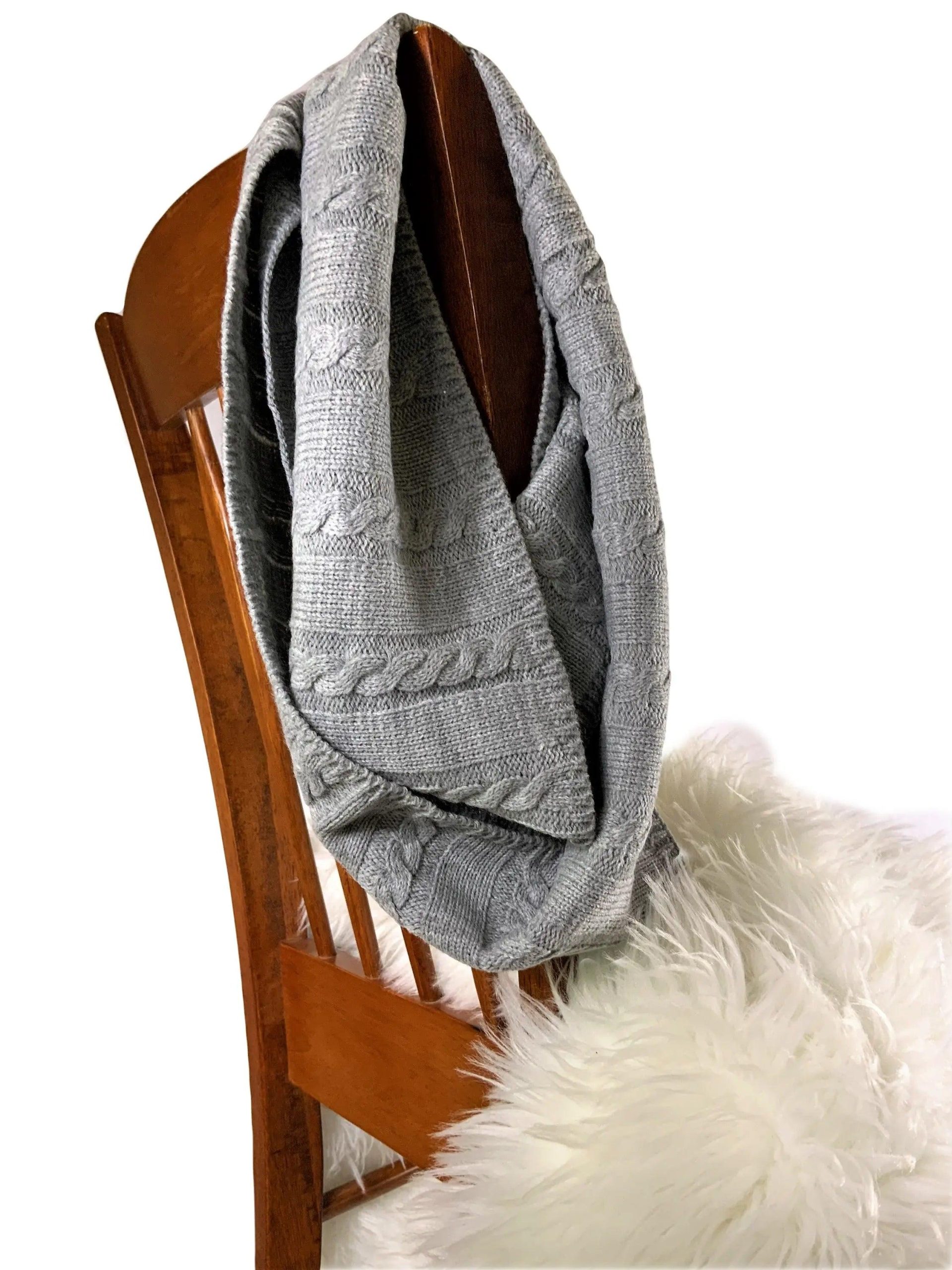 Grey goes with everything, as we all know. That’s why this cable-knit infinity scarf is a must for every woman’s wardrobe. Throw it on with casual ensembles or business wear for a classic, stylish look.