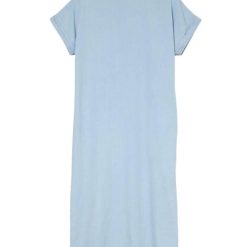 For added comfort and a dash of character, the dress is designed with side slits and endearing rounded hemlines. It also showcases a convenient button closure front that contributes to the overall ease and simplicity of the outfit.
