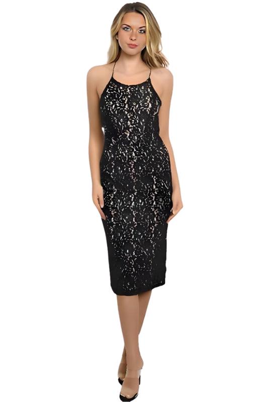 Classy, Sexy, and Flirty… You will turn heads in this backless, black-lace dress! Pair it with a great pair of heels and a red lip, and let the night take you where it wants! Cream colored midi dress featuring a delicate black lace detailing.