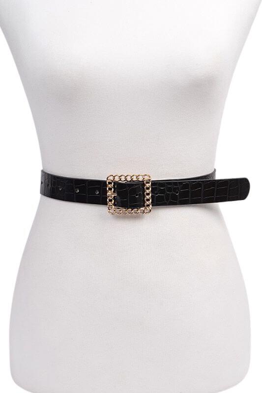 Crocodile Embossed Square Buckle Belts