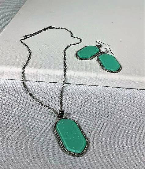 Druzy Sparkle Oblong Necklace & Earrings Set Jewelry