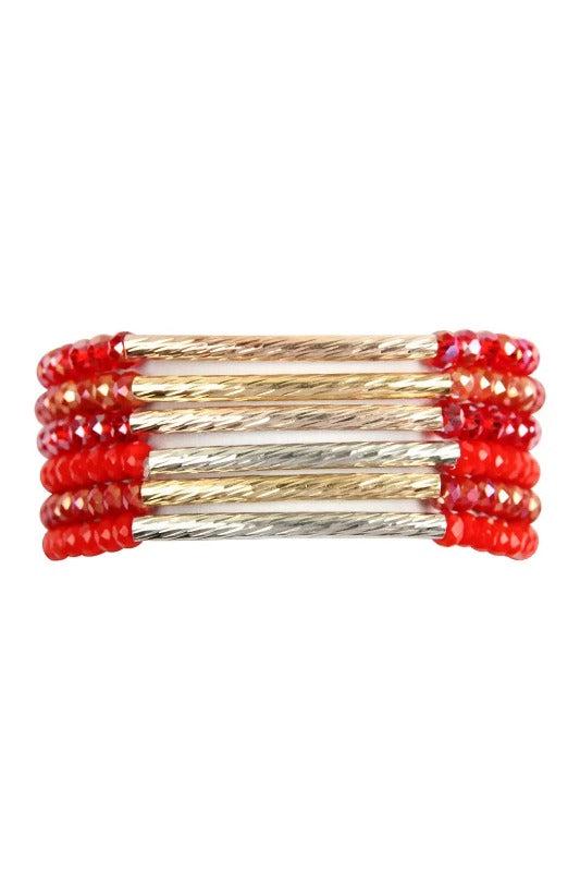 Put together a dazzling ensemble with these Fiesta Frenzy Beaded Bracelets. In an assortment of colors, these polished-stone-and-gold stackable bracelet bars are perfect for dressing up any outfit. Whether you’re headed to a party or just want to add a touch of glamour to your everyday style, these bracelets will help you look your best.