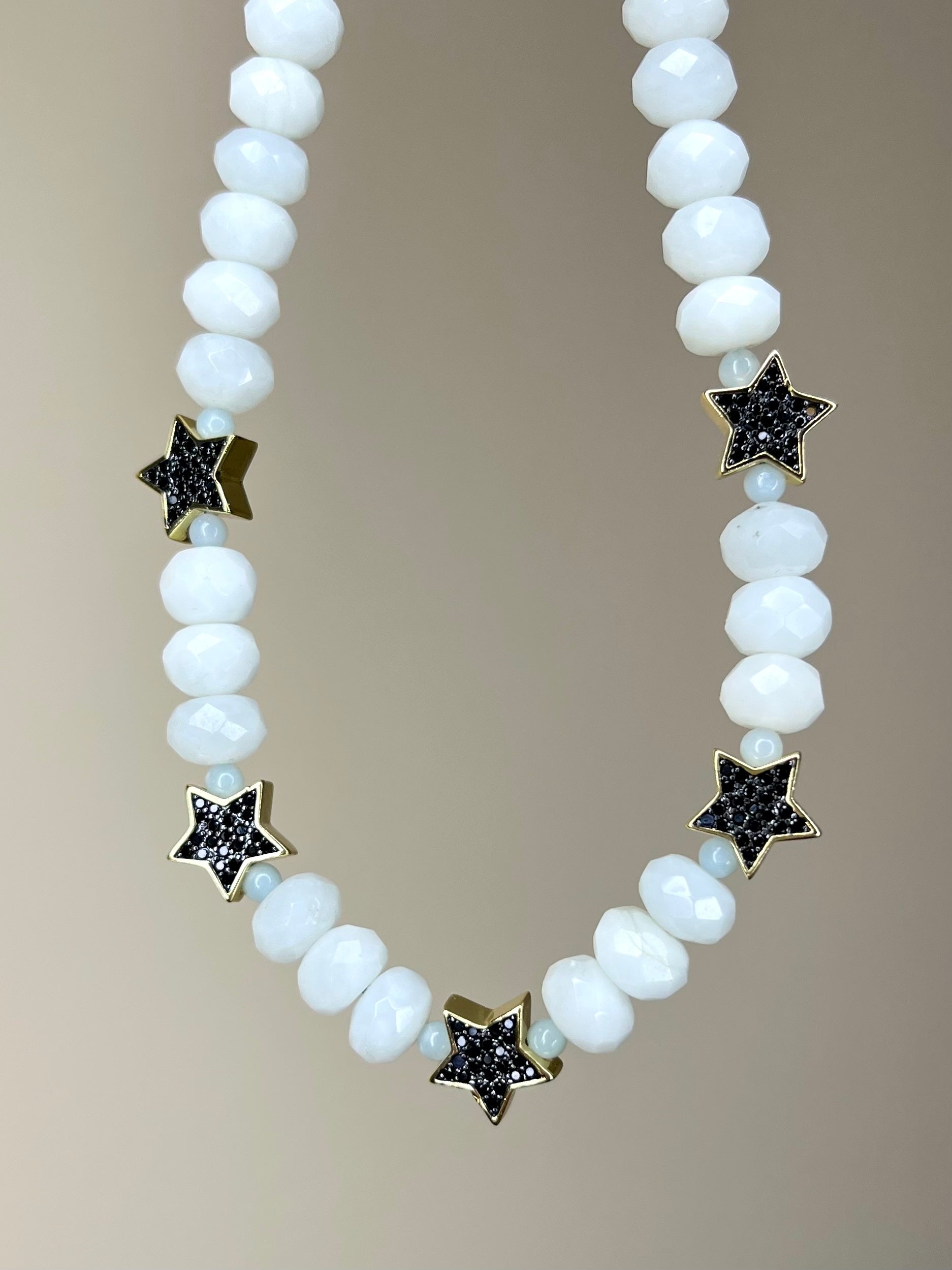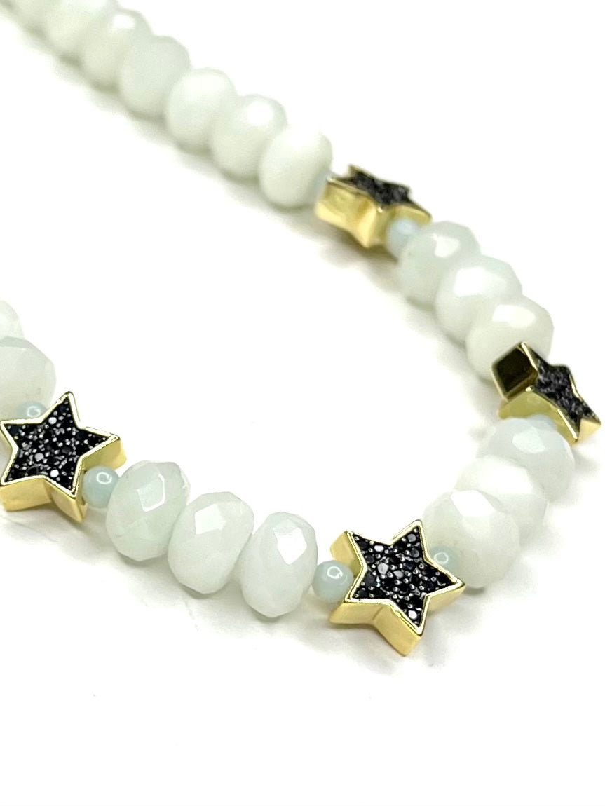 - Adjustable Statement Necklace-?fashioned from luxe New Jade rondelles and accented with pave CZ stars