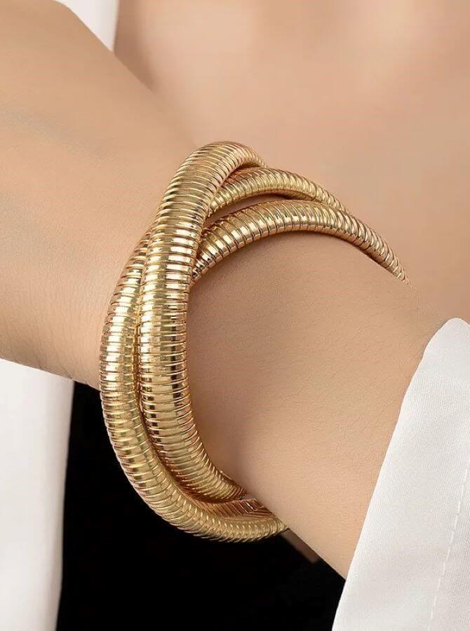 Modern Minimalist: Team the bangle with a black jumpsuit, strappy heels, and a sleek ponytail. The bracelet will serve as the ensemble’s focal point, exuding understated sophistication.