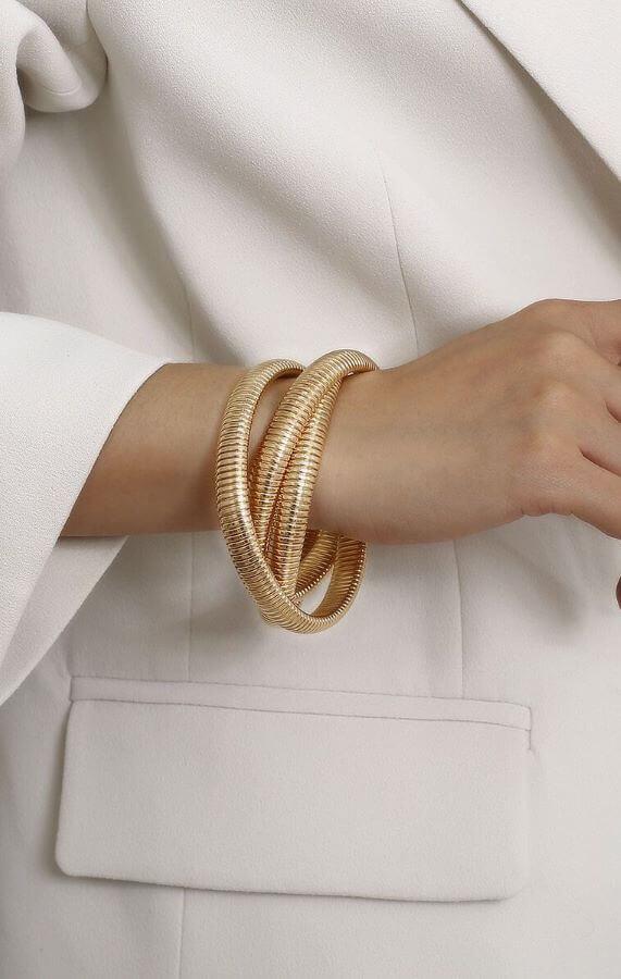The Golden Cobra Triple-Stack Bangle is more than just jewelry; it’s an emblem of strength, luxury, and timeless style. Embrace its allure and let it seamlessly intertwine with your fashion narratives.