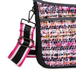 - Comes with two straps – 2″ pink/white/black and solid black