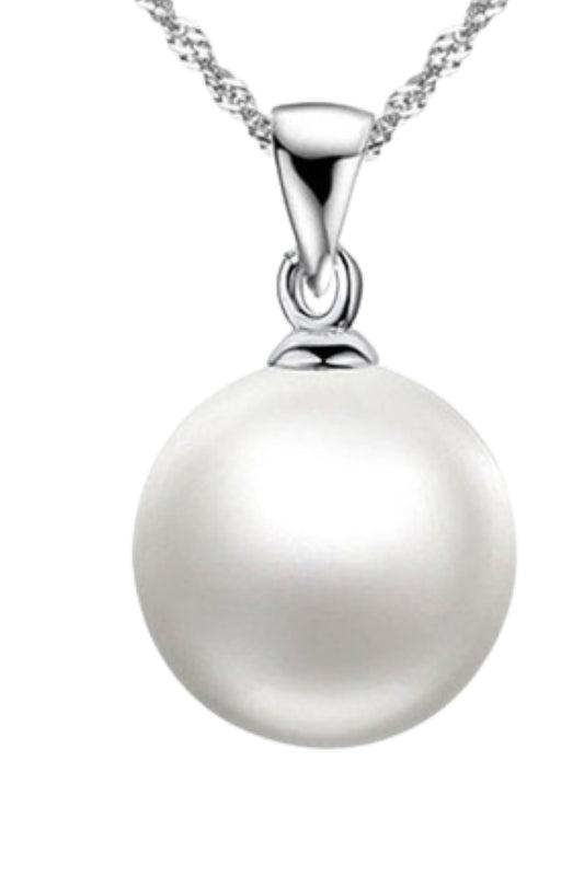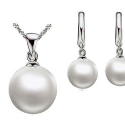 Sterling Silver Plated Pearl Necklace and Pearl Hoop Earring Set.