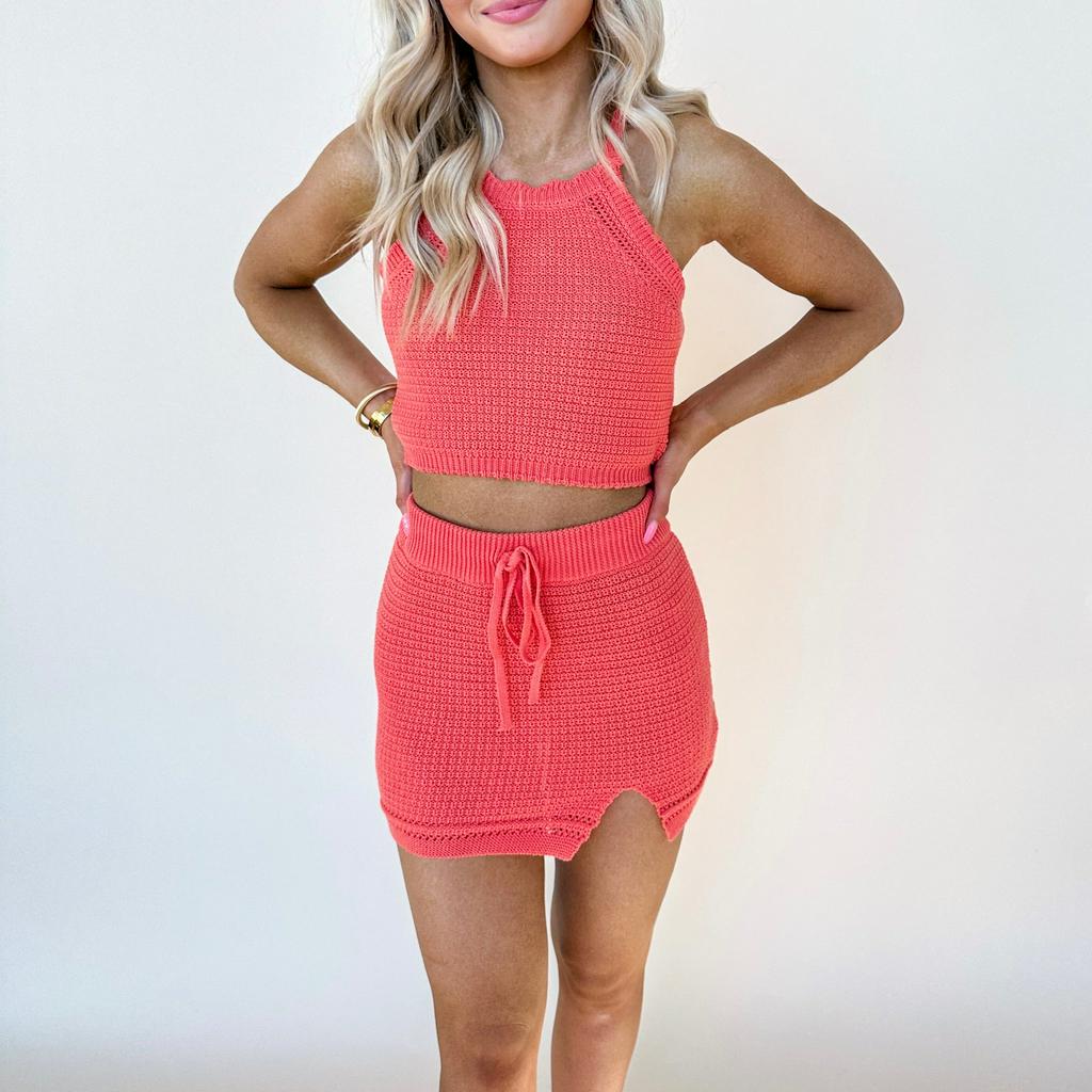 Make waves in our Lexie Set, a 100% cotton crochet skirt set that puts a breezy and beachy spin on your wardrobe. This coral-colored cutie is sure to make you feel beautiful!?