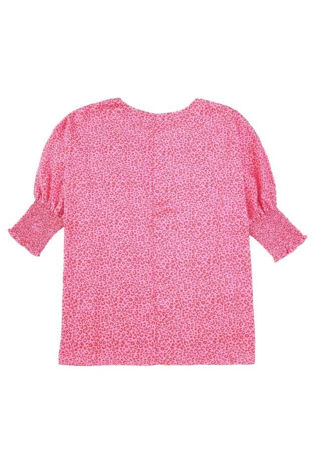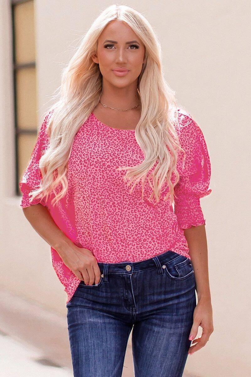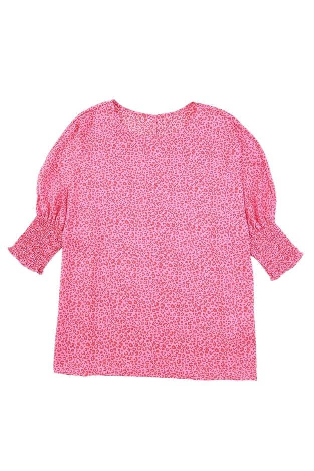 Pink Leopard Oversize Blouse | Lightweight Boatneck with Smocked Cuffs