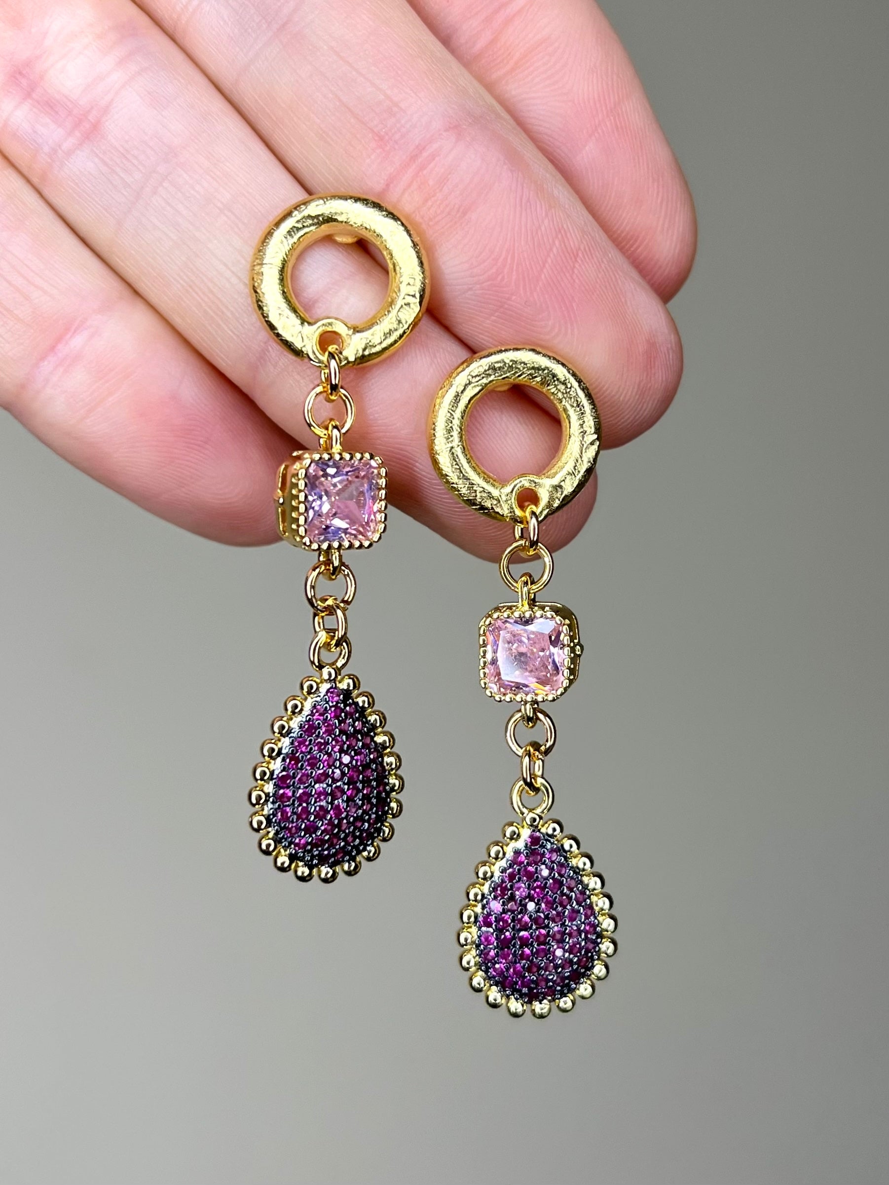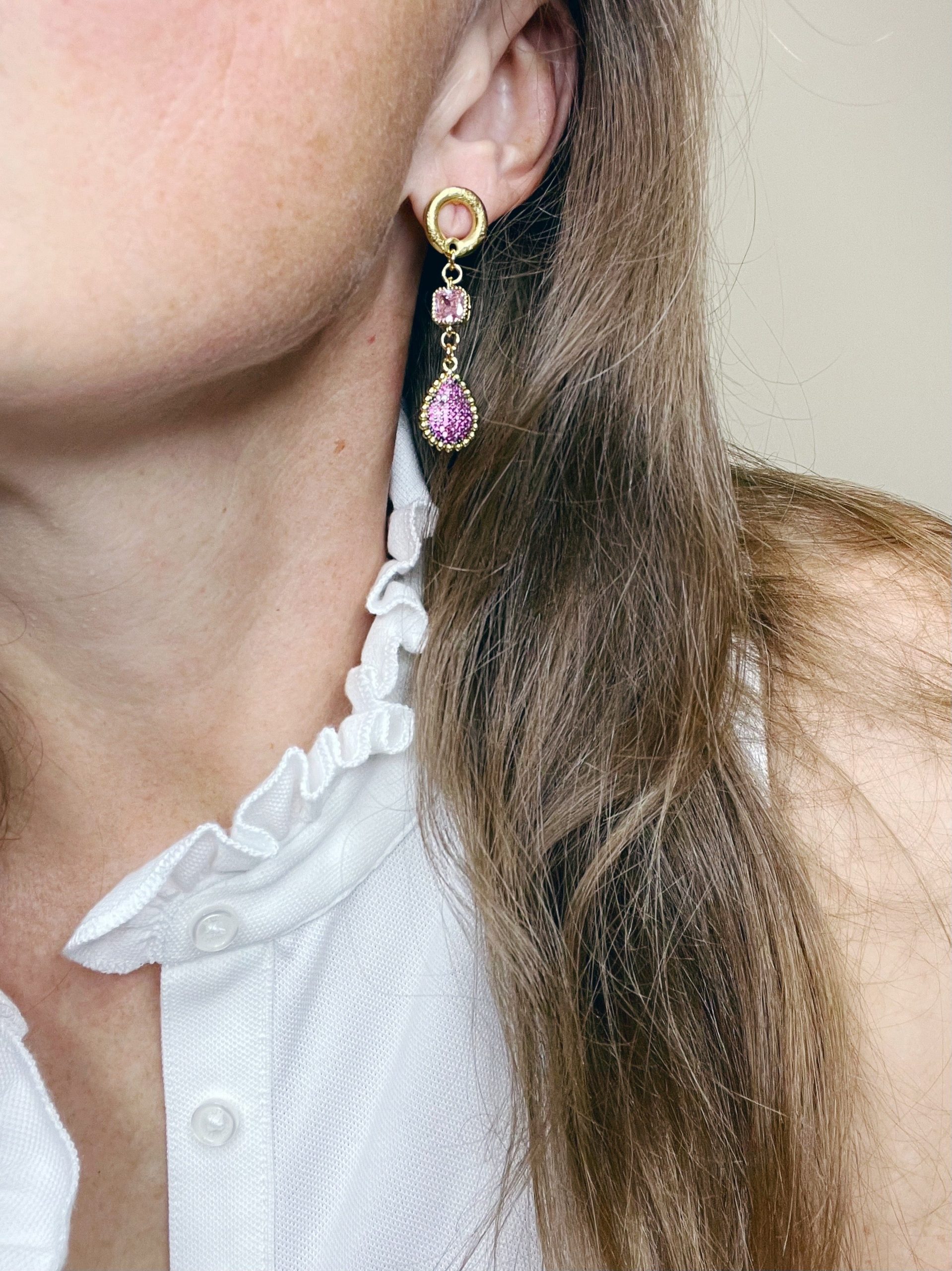 - Crystal Drop Earring in Shades of Pink-?designed to bring sparkle to your complexion and so many compliments