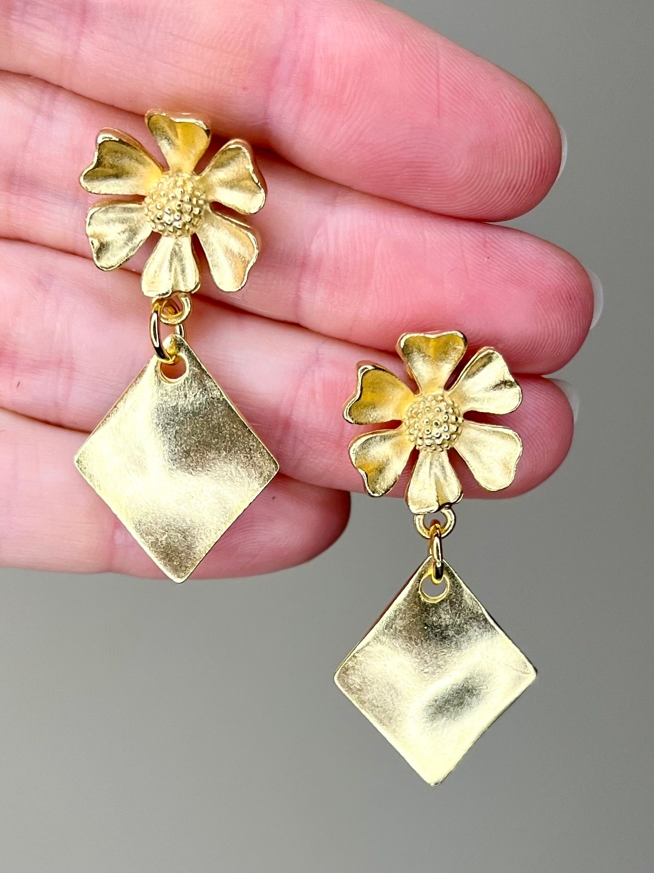 - Satin Gold Drop Earring-?this shimmery finish is flattering to everyone and we are obsessed with its ultimate simplicity