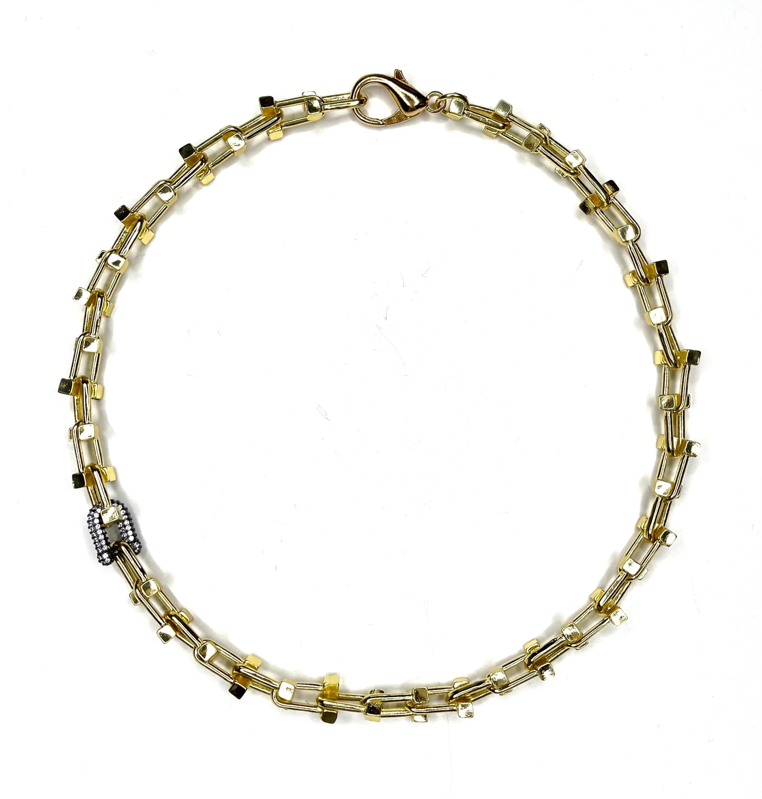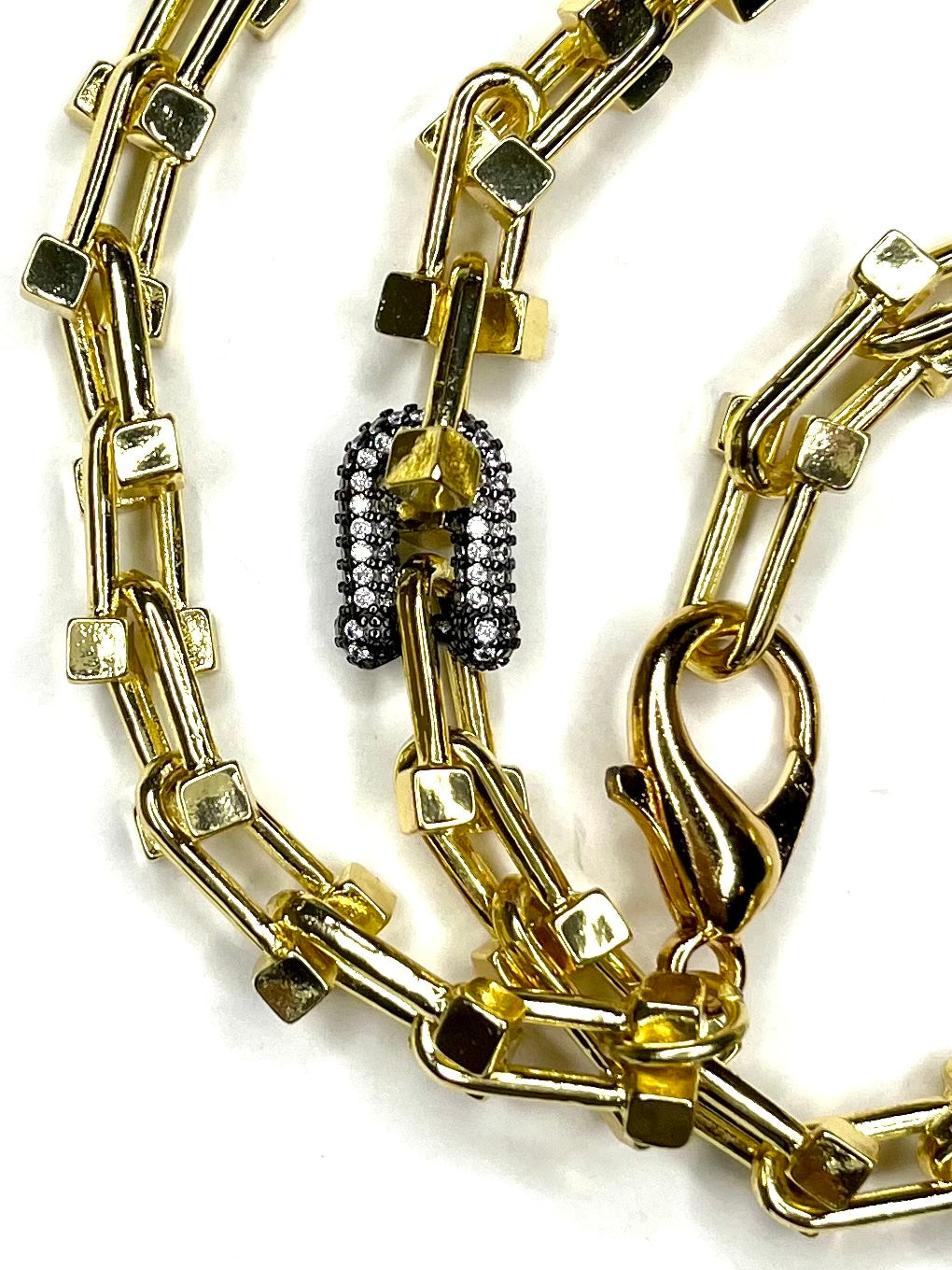- Mixed Metal Necklace- a pop of contrasting colored metal and rhinestones makes a big statement